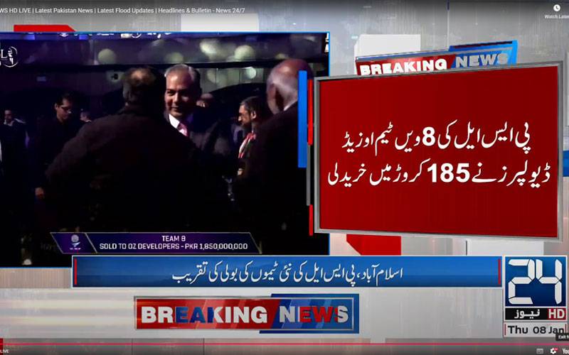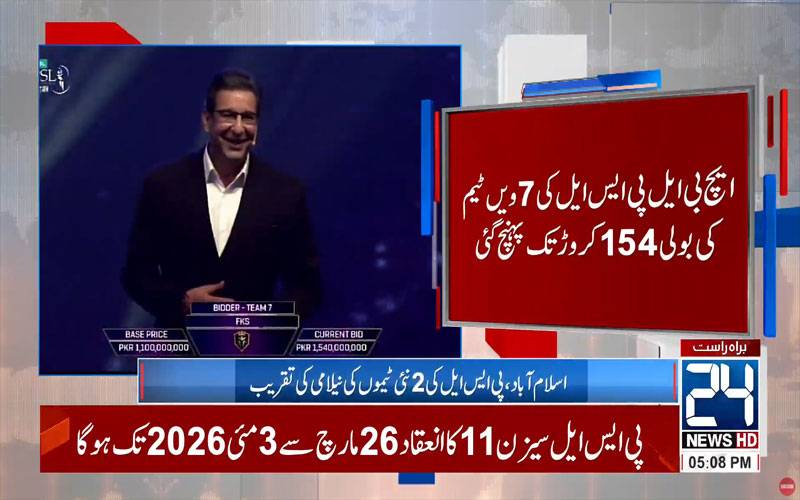 (24نیوز) پاکستان سپر لیگ میں شامل کی جا رہی دو نئی ٹیموں کی نیلامی کا آغاز ہو گیا۔ ساتویں ٹیم…