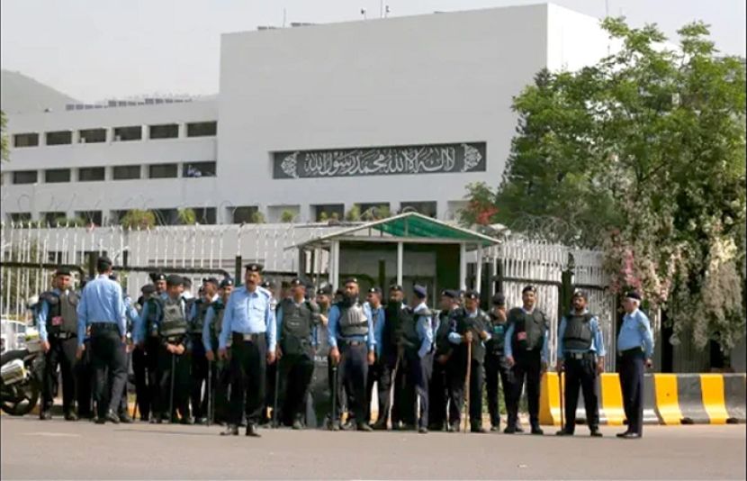 پی ٹی آئی پارلیمنٹیرینز کے احتجاج کے پیش نظر پارلیمنٹ ہاؤس کے گیٹ پر پولیس کی بھاری نفری تعینات کر…